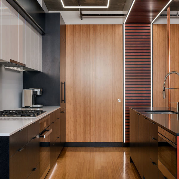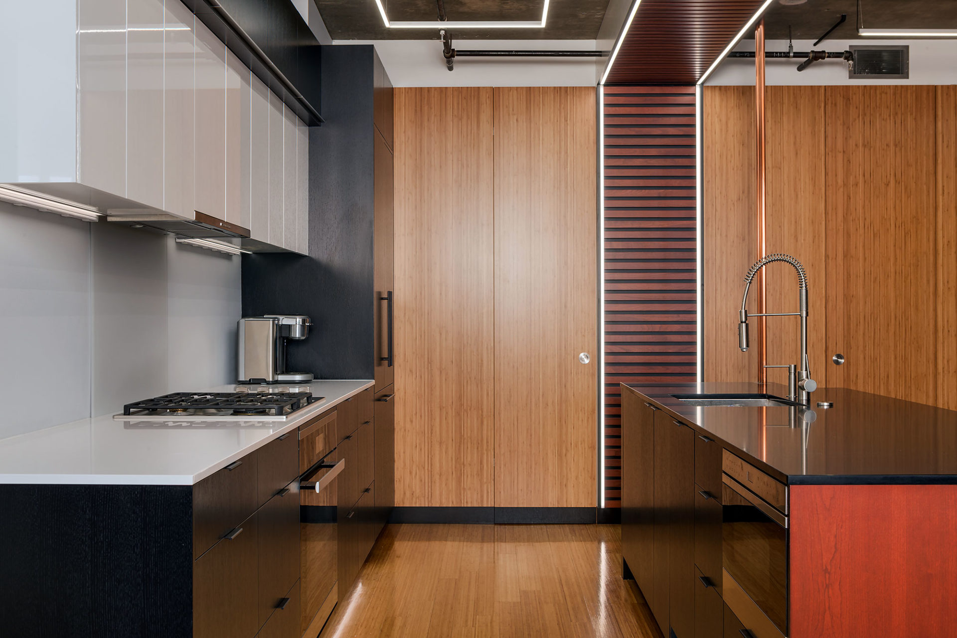 - All kitchen lights use remote controlled LED strips with custom fixtures