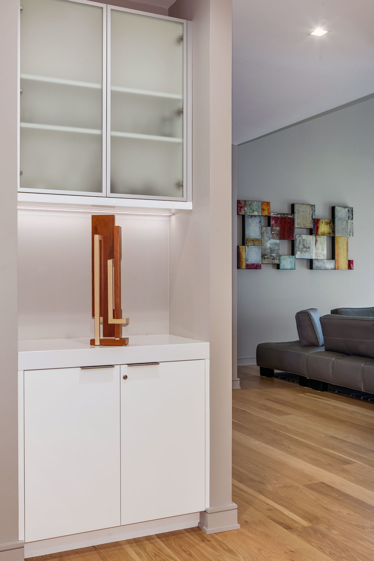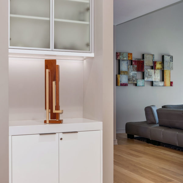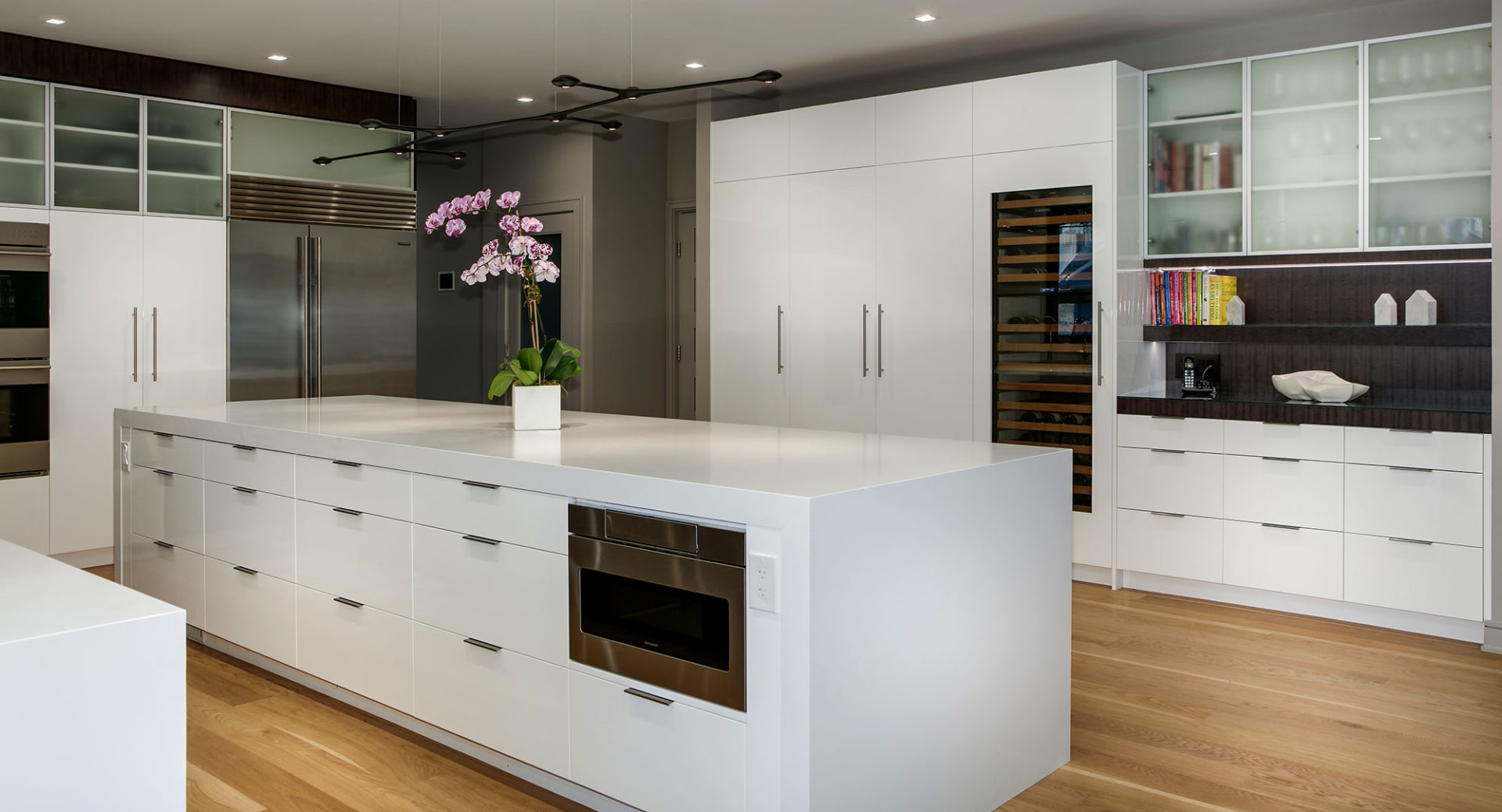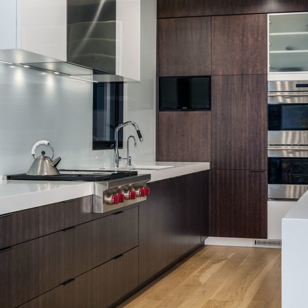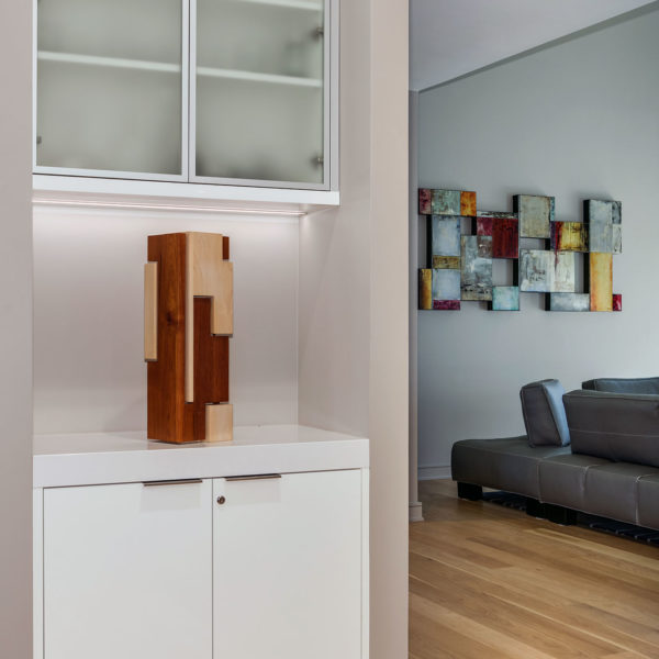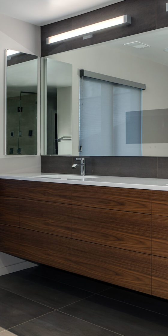 - Combination of hi-gloss polished and dyed figured anegre veneer fronts
