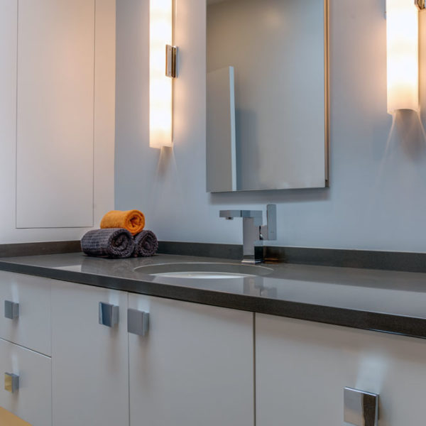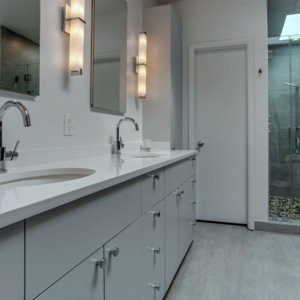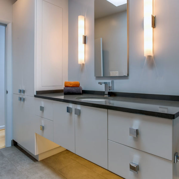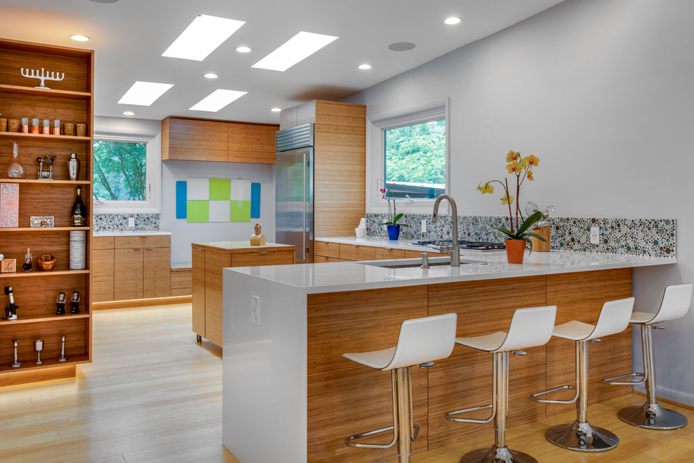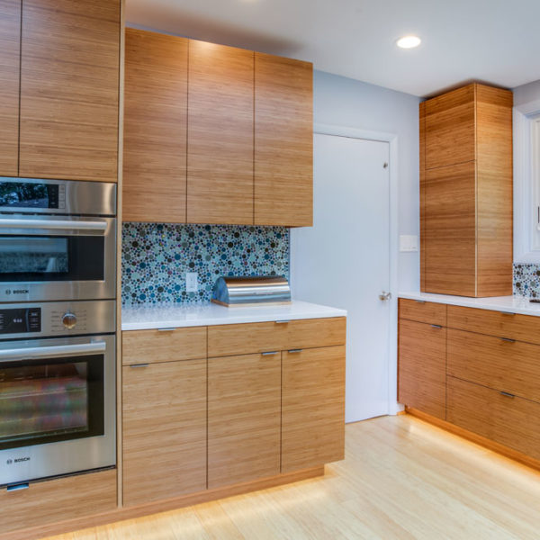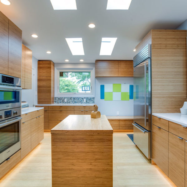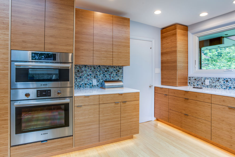 Working closely with both, previous and current owners we made kitchen beautiful and functional centerpiece of the house. Bamboo brought from back yard gave warmth to otherwise cold, straight kitchen shapes and made it truly stand out.