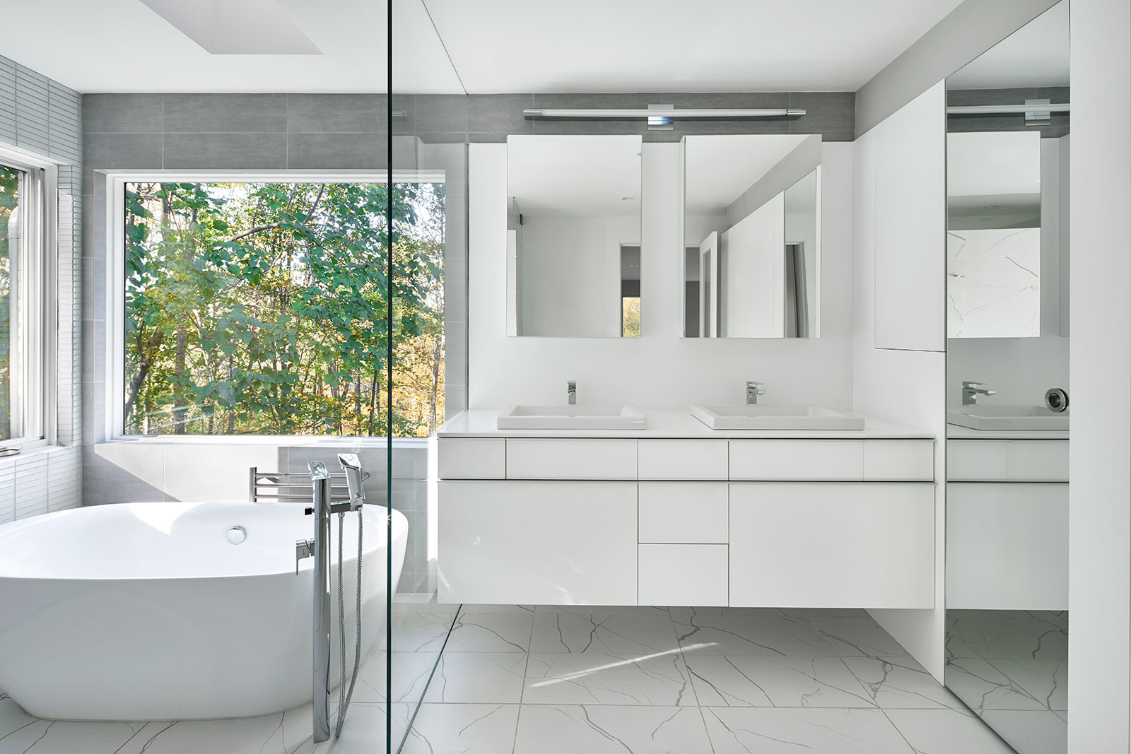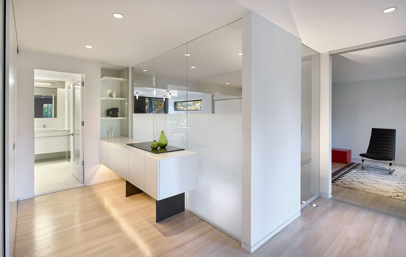 - both rooms are connected through mill-work which starts with custom vanity and finishes with cabinet in the bedroom